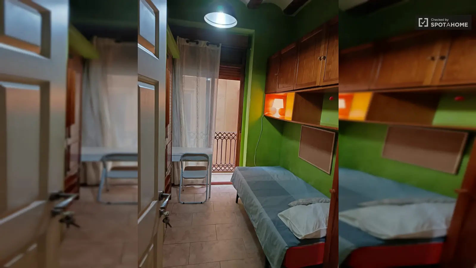 Cette chambre extérieure est meublée d'un lit, un bureau, une commode et une armoire autonome. Il y a un balcon qui donne sur une rue piétonne calme. La chambre dispose d'une clé indépendante pour plus de sécurité.