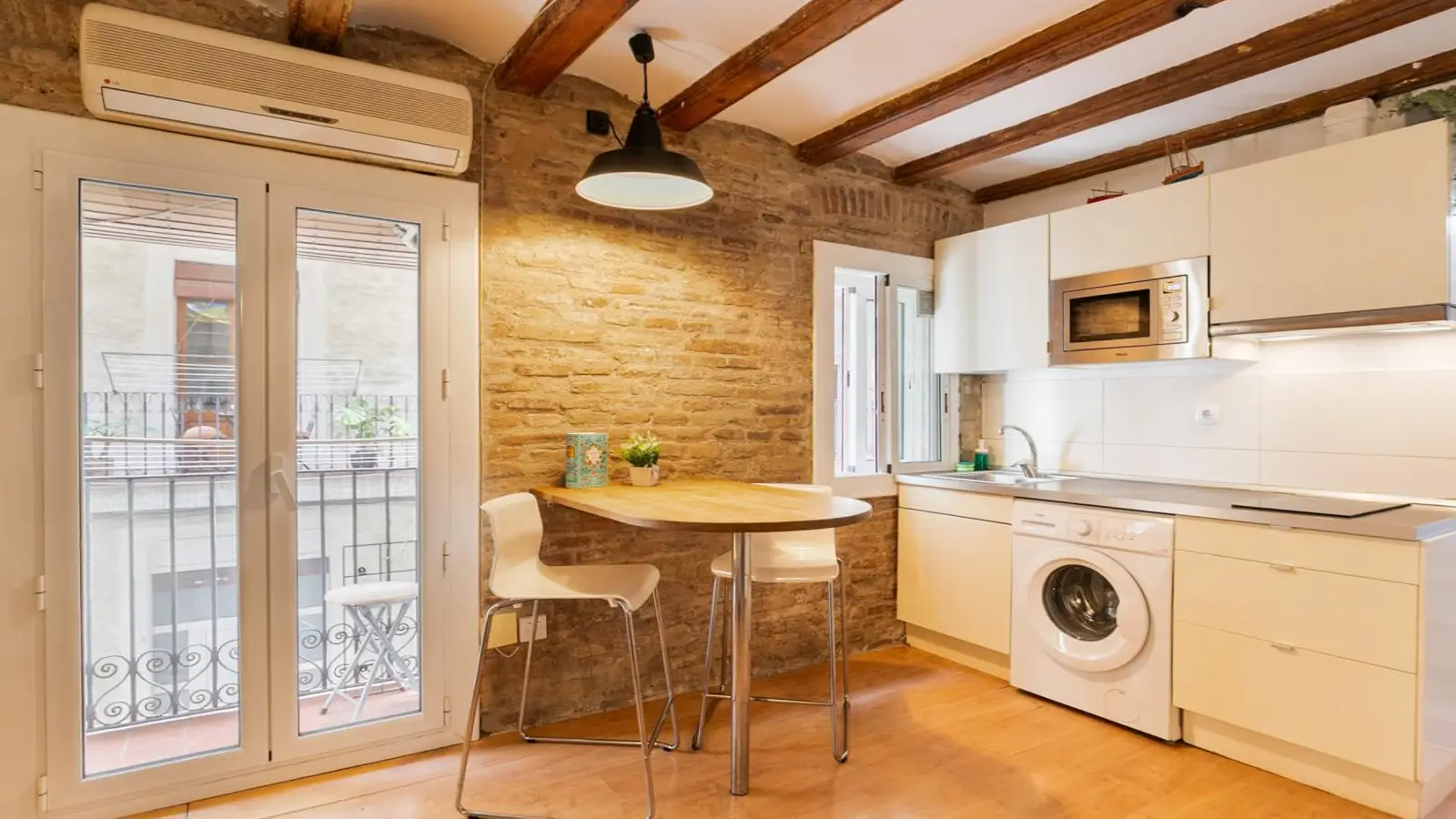 Questo moderno monolocale a La Barceloneta, Barcellona, è ora disponibile per l'affitto. Il monolocale è completamente arredato e include un balcone, aria condizionata e un sistema elettrico di riscaldamento e acqua. Tutte le utenze (elettricità, acqua, gas e Wi-Fi) sono incluse, garantendo comfort e praticità agli inquilini.