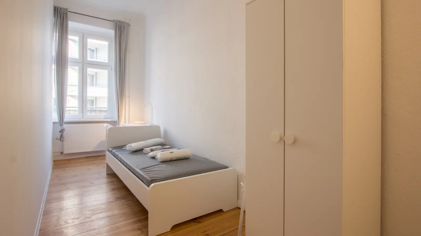 Cerchi una stanza confortevole ed elegante a Berlino? Questa stanza in un appartamento condiviso con 3 camere da letto offre tutti i comfort necessari, inclusi riscaldamento, elettricità, acqua, gas e Wi-Fi, tutte le bollette incluse. La stanza è completamente arredata, dispone di cucina attrezzata e lavatrice privata, e ha accesso a un balcone. Non è consentito fumare e non sono ammessi animali. Verificato da Spotahome, che ne garantisce l'autenticità e la qualità.
