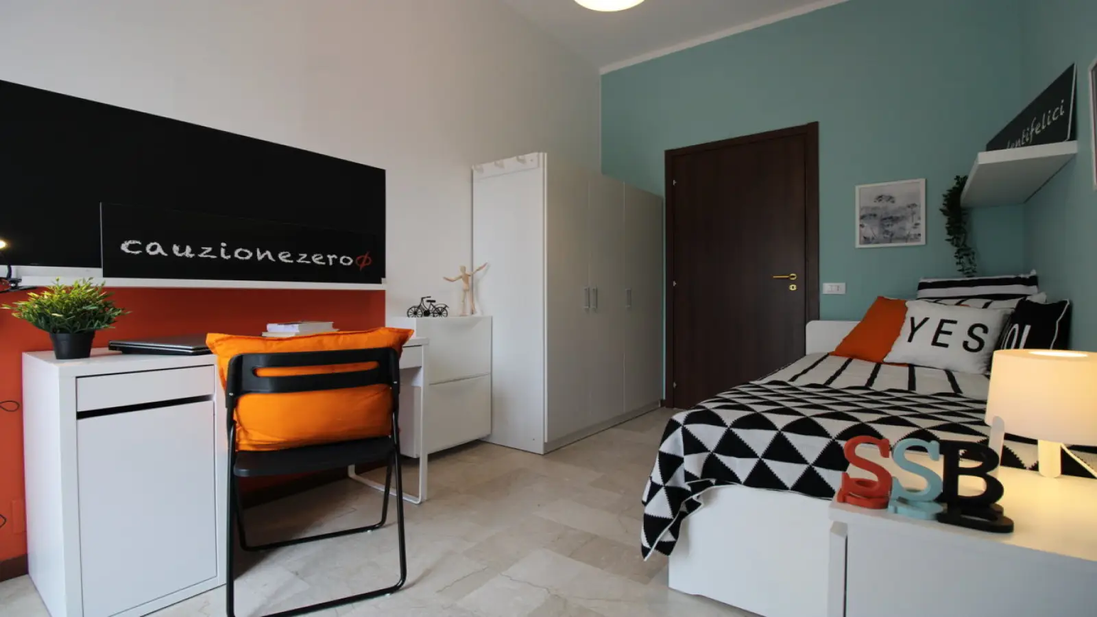 Zona Mompiano, posizione strategica e ambita, si affitta una sfiziosa camera singola con balcone. La stanza è dotata di letto singolo, armadio 3 ante, scrivania, comodino, tendaggi, specchio, scarpiera. I colori delle pareti favoriscono il buon umore e aiutano nello studio.
