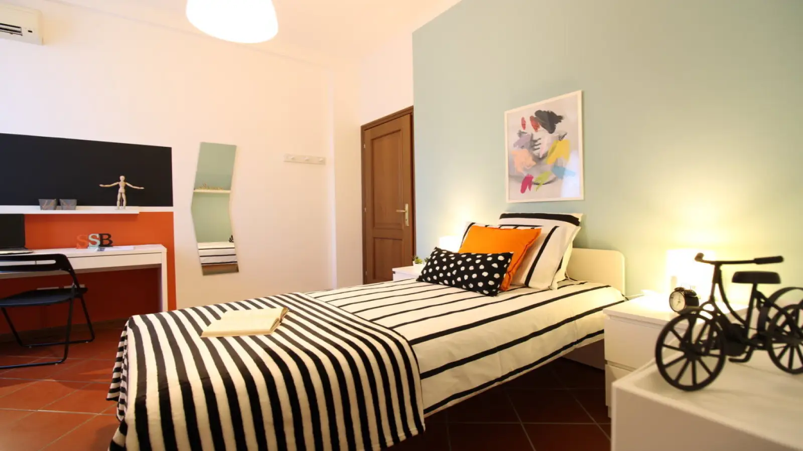 In pieno centro storico a pochi passi dall'università Cattolica, si affitta una bellissima suite singola ristrutturata appositamente per offrire comfort e comodità ai nostri studenti. La stanza è dotata di letto singolo, armadio 3 ante, scrivania con portaoggetti, comodino, tendaggi, specchio, scarpiera e libreria. I colori delle pareti favoriscono il buon umore e aiutano nello studio.