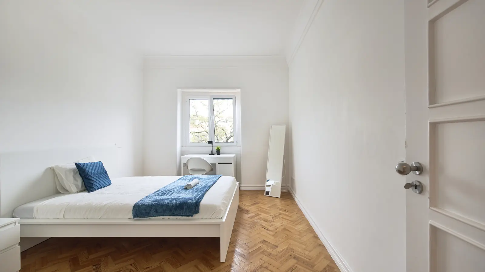 Stanza in un appartamento condiviso con 9 camere da letto in affitto a Lisbona, riservato a professionisti e non fumatori.