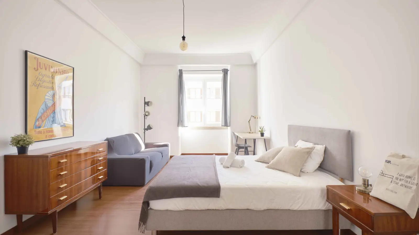 Questa stanza fa parte di un appartamento condiviso con 8 camere da letto situato a Lisbona. L'appartamento è completamente arredato e dispone di un sistema di riscaldamento a gas naturale, riscaldamento elettrico singolo, lavastoviglie condivisa, lavatrice, cucina con forno e Wi-Fi incluso. Le coppie non sono ammesse, ma la struttura accoglie professionisti e studenti di entrambi i sessi.