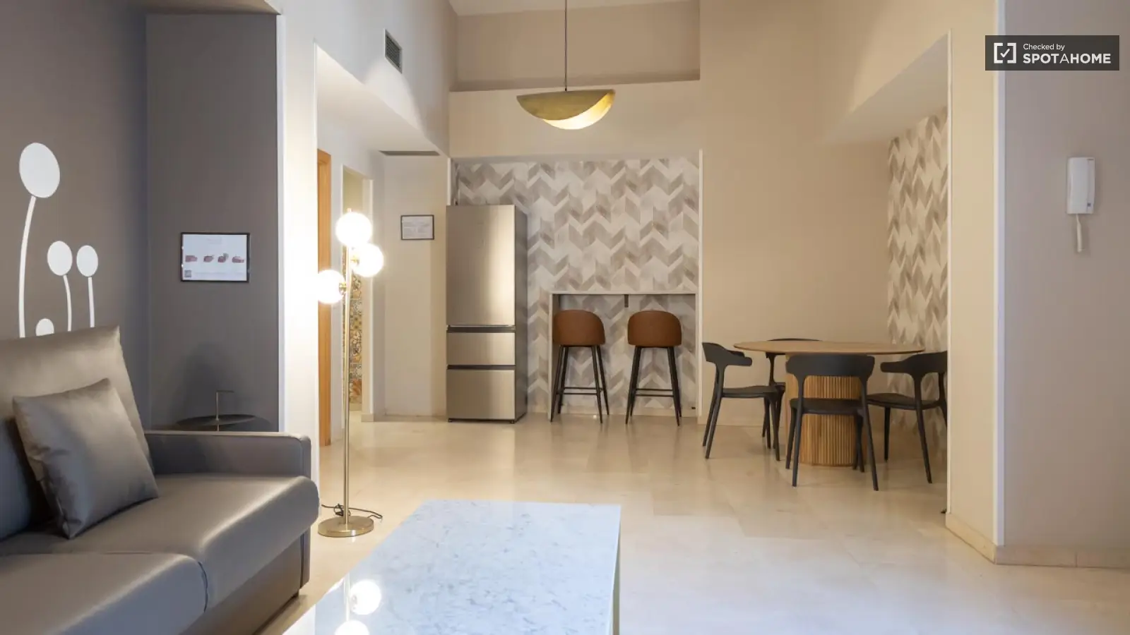 Questo appartamento completamente arredato con una camera da letto è disponibile per l'affitto nel quartiere Sol di Madrid. L'immobile dispone di aria condizionata centralizzata, lavatrice privata, TV, cucina attrezzata e un grazioso balcone. La biancheria da letto è inclusa nel prezzo di affitto. Questo appartamento è la scelta perfetta per professionisti o studenti. Le coppie sono benvenute. Non sono ammessi fumatori, animali domestici e famiglie. L'edificio è dotato di ascensore per un facile accesso all'appartamento. Spotahome ha verificato personalmente questo immobile.