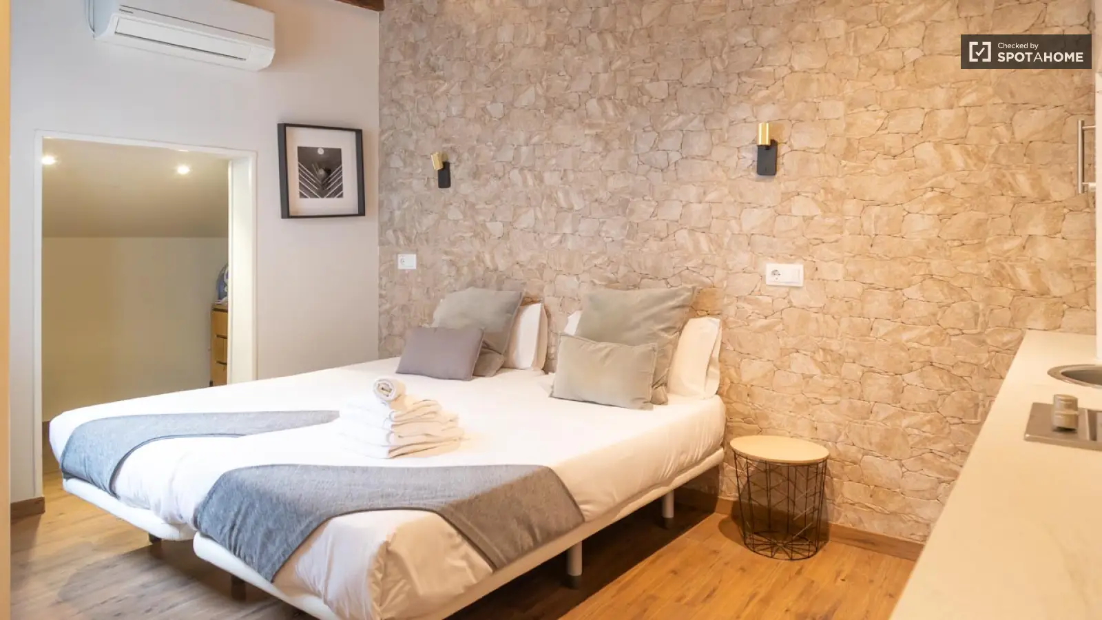 Questo accogliente monolocale in affitto si trova nel vivace quartiere di Sol, a Madrid. Il monolocale è completamente arredato e offre comfort come aria condizionata individuale, TV e lavatrice privata. La cucina è attrezzata, offrendo la comodità di preparare i pasti. L'immobile è stato verificato da Spotahome per garantire un'esperienza di affitto affidabile.