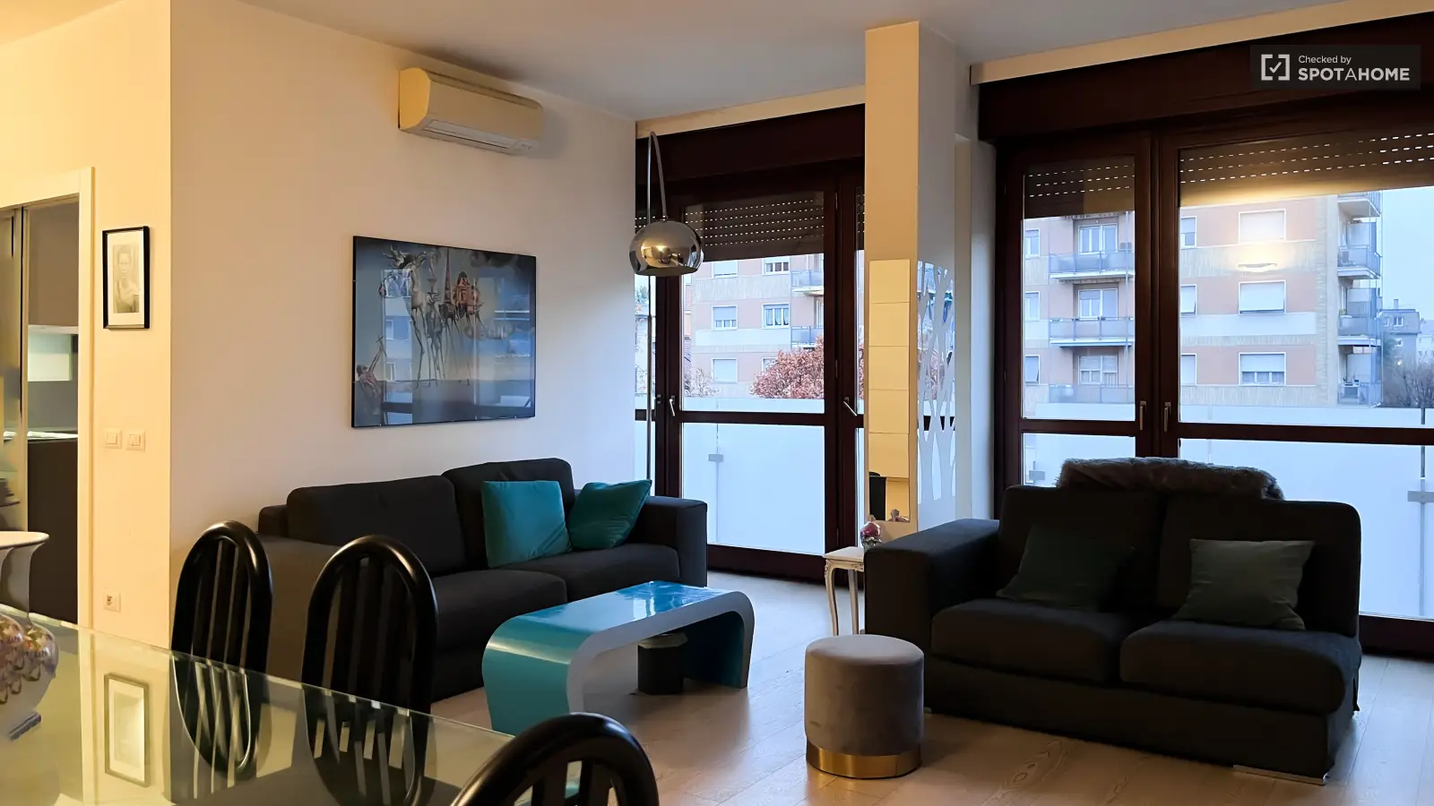 Questo elegante appartamento con una camera da letto nel quartiere Corsica di Milano è completamente arredato e offre un'esperienza di vita confortevole. L'immobile dispone di lavatrice privata, TV e cucina attrezzata con lavastoviglie e forno. Un ulteriore vantaggio è l'aria condizionata individuale installata per la vostra comodità. Un balcone privato aggiunge fascino a questo accogliente appartamento. Poiché tutte le spese sono incluse nell'affitto, gli inquilini possono godere di un soggiorno senza pensieri.
