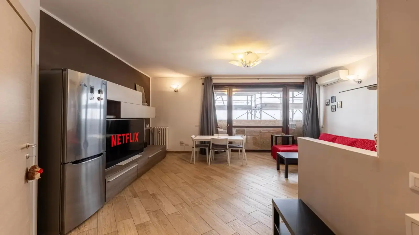 Vivi comodamente in questo appartamento con una camera da letto ben arredato situato a Sacco, Milano. L'appartamento è elegantemente progettato e dotato di aria condizionata centralizzata, lavatrice privata, lavastoviglie e TV per le tue esigenze di intrattenimento. La cucina è completamente attrezzata, con forno per la tua comodità, e l'appartamento offre anche un balcone o una terrazza per il relax. Questa proprietà offre flessibilità, poiché sono benvenuti sia professionisti che studenti, anche le coppie sono ammesse ed è consentito fumare all'interno della proprietà.