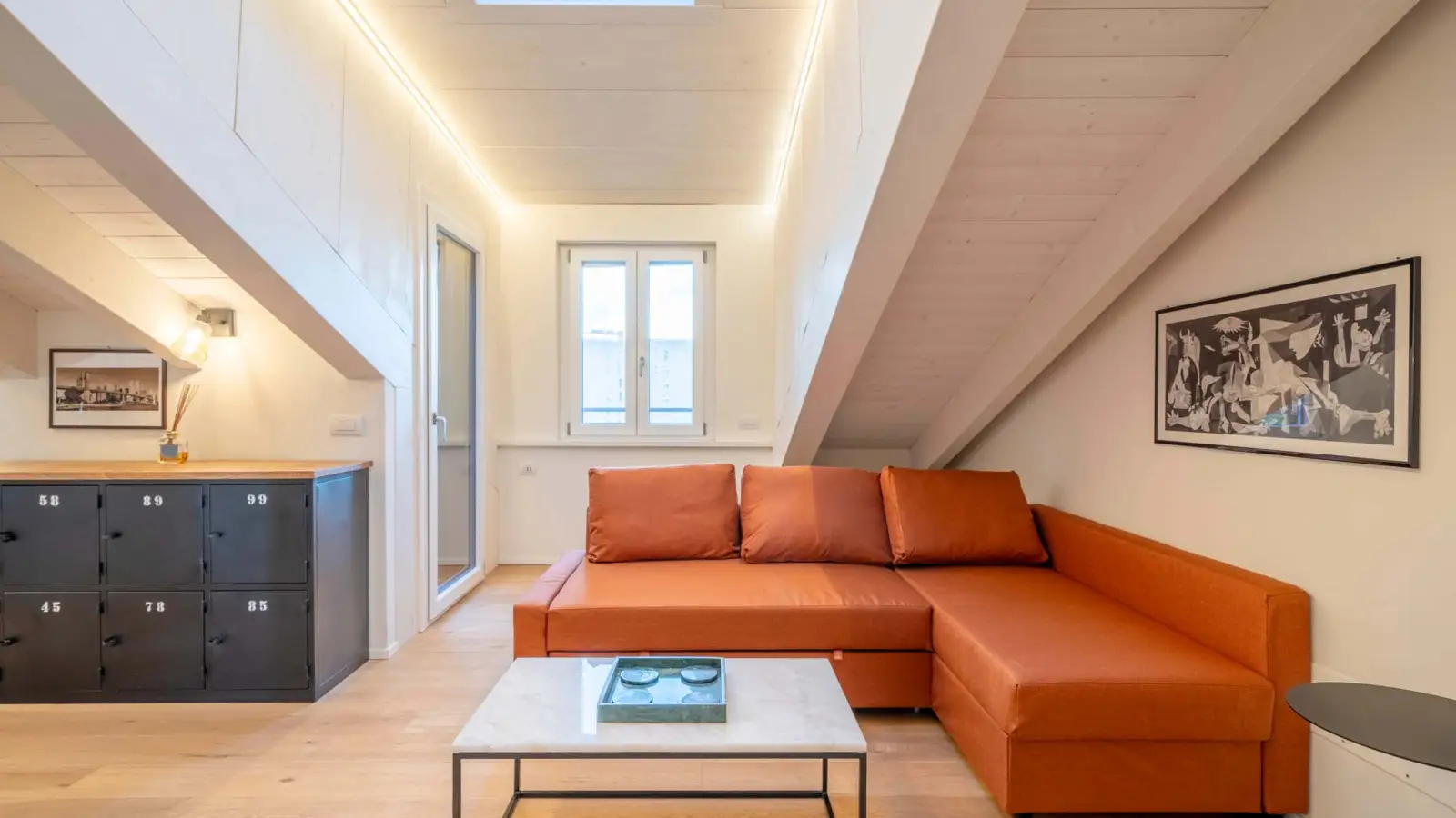L'appartamento è dotato di una vasta gamma di comfort che garantiscono un elevato standard di vita: arredi di qualità, aria condizionata, riscaldamento autonomo a pavimento, sistema domotico con controllo remoto di luci, riscaldamento e tapparelle, WiFi, sistema di allarme, porta blindata, ascensore, servizio di portineria dal lunedì al sabato, deposito biciclette, lavatrice, asciugatrice, lavastoviglie, forno, piano cottura, frigorifero e congelatore, Smart TV, utensili da cucina, ferro e asse da stiro, asciugacapelli e aspirapolvere.