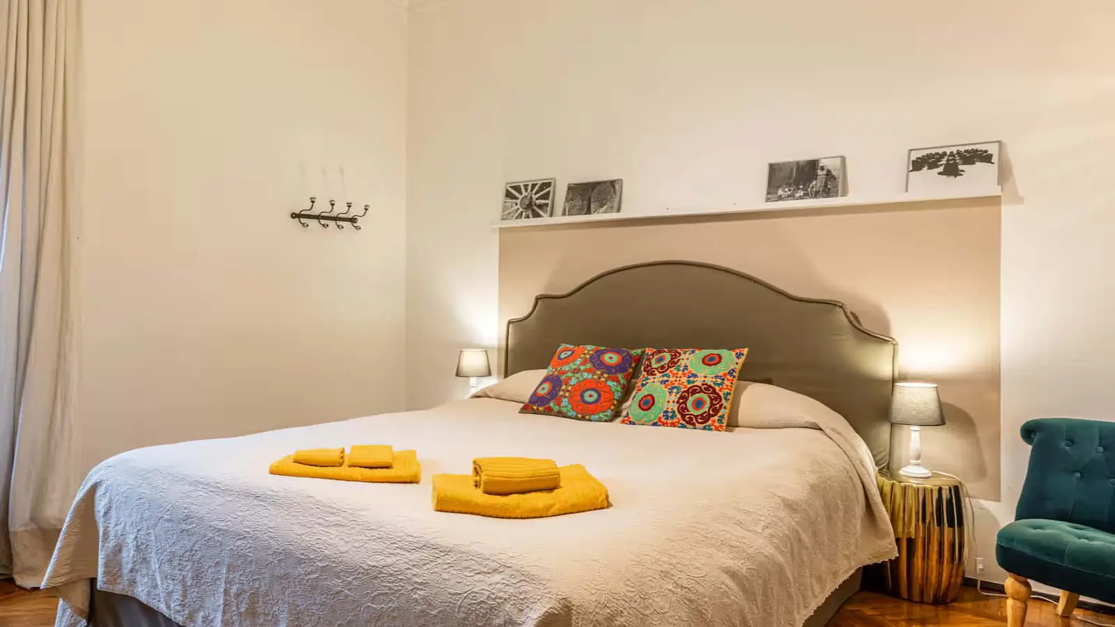 La camera da letto è spaziosa e luminosa, con un comodo letto queen-size e un'ampia cabina armadio. La fantastica combinazione di colori e gli oggetti di design presenti rendono la Suite il cuore pulsante della casa.