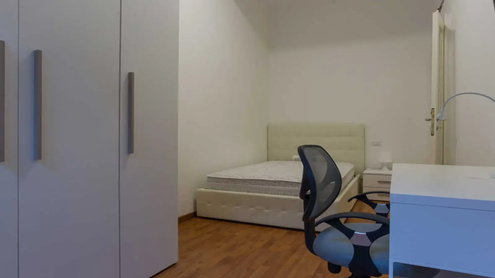 Camera singola in appartamento condiviso, composto da 5 camere da letto e 2 bagni. Di circa 12 mq con un letto a una piazza e mezza e una postazione di lavoro. Con Wi-Fi, aria condizionata, servizio di portineria, lavastoviglie, lavatrice. Classe energetica: E, IPE 147,43 Kwh/mq anno.