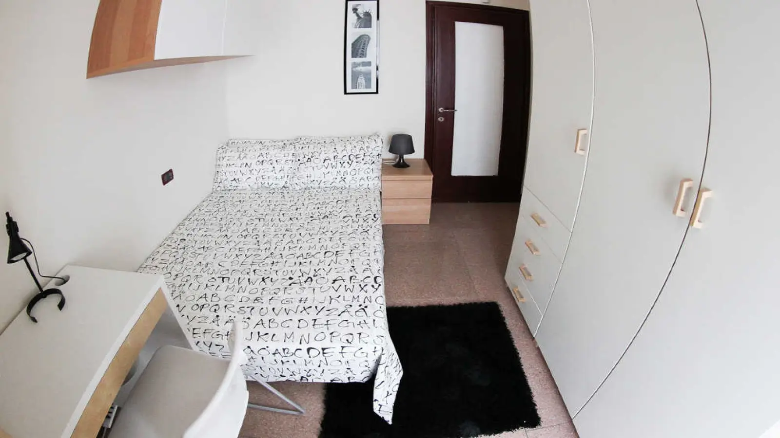Stanza singola in appartamento condiviso, composto da 7 camere da letto e 3 bagni. Di circa 9 mq con un letto da una piazza e mezza e una postazione di lavoro. Con wifi, lavatrice. Classe energetica: D, IPE 135,31 Kwh/mq anno.