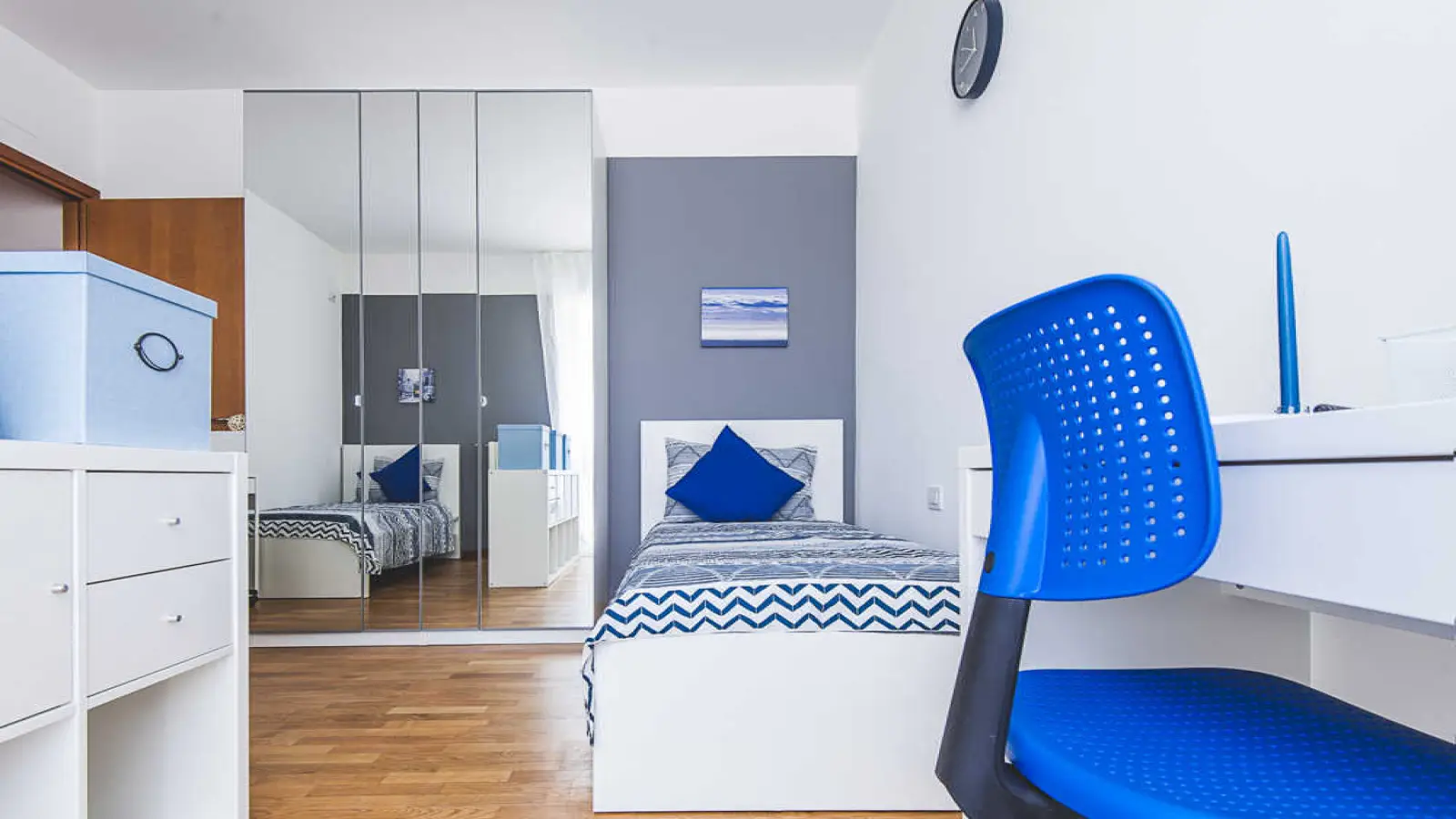 Camera singola in appartamento condiviso, composto da 4 camere da letto e 2 bagni. Di circa 18 mq con un letto singolo e una postazione di lavoro. Con wifi, lavatrice. Classe energetica: C, IPE 79,92 Kwh/mq anno.