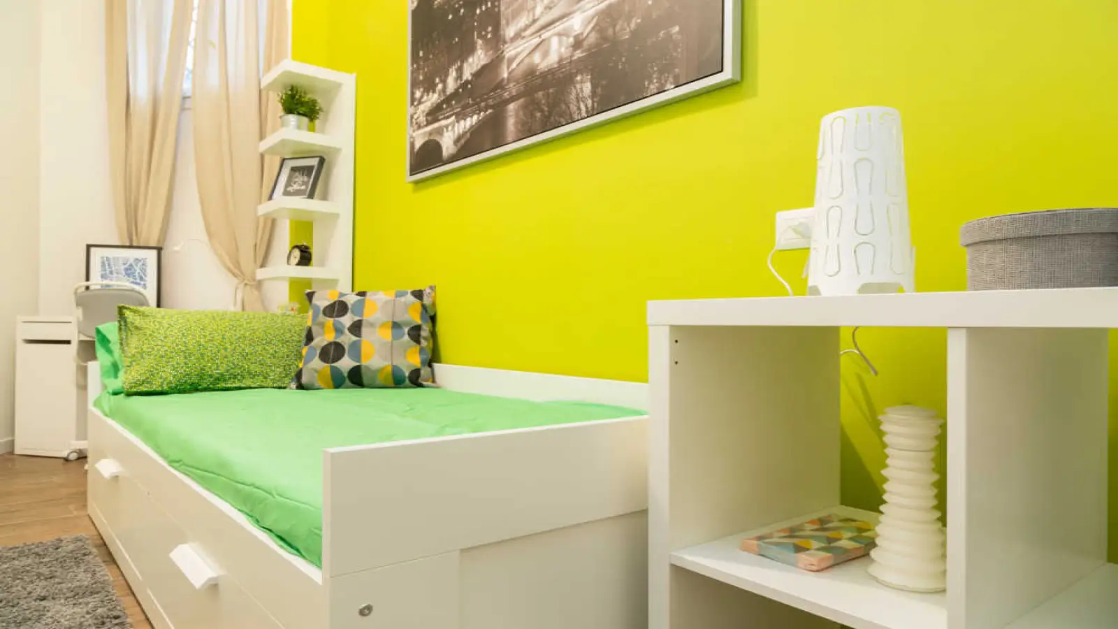 Camera singola in appartamento condiviso, composto da 4 camere da letto e 2 bagni. Di circa 10 mq con un letto singolo e una postazione di lavoro. Con Wi-Fi, lavastoviglie, lavatrice. Classe energetica: G, IPE 499,42 kWh/mq anno.
