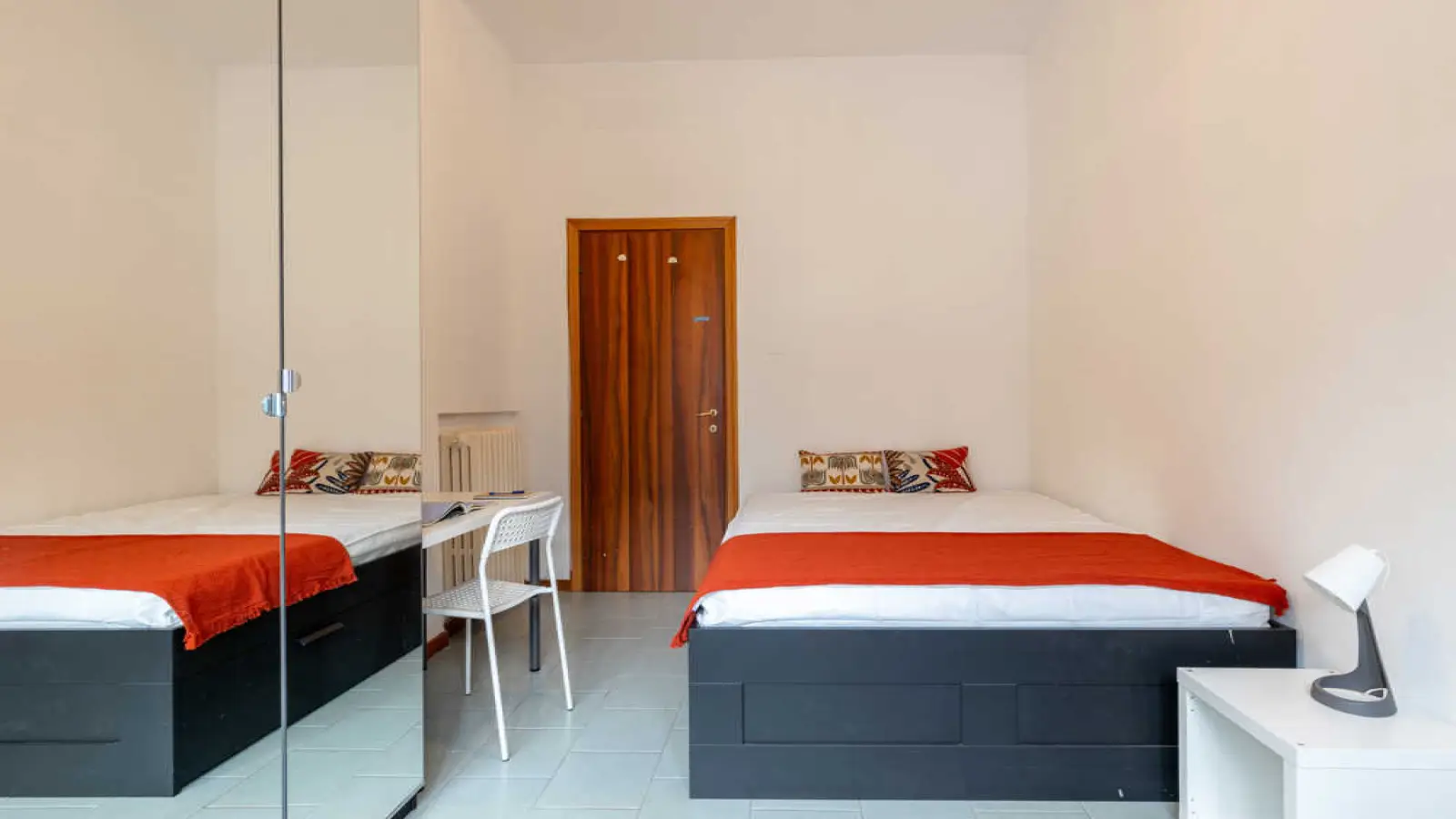 Questa confortevole camera è disponibile in un appartamento condiviso con 6 camere da letto situato a De Angeli-Monte Rosa, Milano. L'appartamento è completamente arredato e accoglie studenti e professionisti. Si prega di notare che le coppie non sono ammesse, che gli animali domestici e il fumo sono vietati. Tutte le spese sono incluse e l'alloggio è stato verificato da Spotahome per la vostra tranquillità.