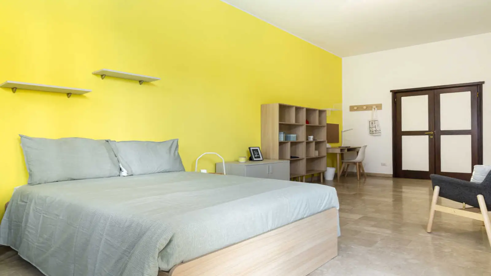 Stanza singola in appartamento condiviso, composto da 6 camere e 3 bagni. Di circa 32 mq con un letto da una piazza e mezza e una postazione di lavoro. Con wifi, servizi di portineria, lavastoviglie, lavatrice. Classe energetica: D, IPE 87,83 Kwh/mq anno.