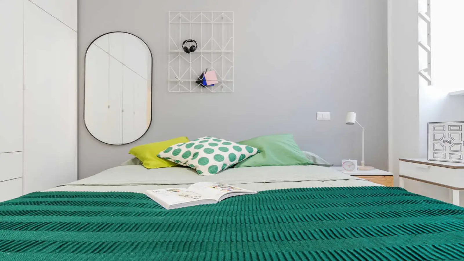 Camera singola in appartamento condiviso, composto da 6 camere da letto e 3 bagni. Di circa 14 mq con un letto singolo e una postazione di lavoro. Con wifi, lavastoviglie, lavatrice. Classe energetica: A, IPE 59,84 Kwh/mq anno.