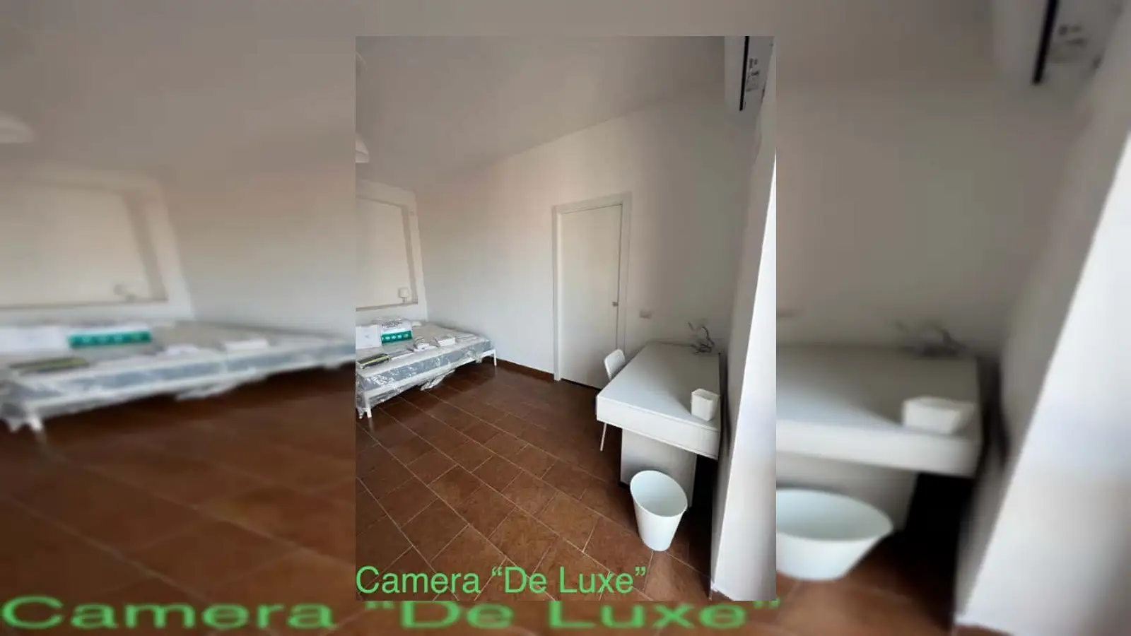 Camera "deluxe" con 2 posti letto per 2 studenti: Dimensioni camera: 20mq + 4,9mq balcone Balcone grande con tenda da sole: 4,9mq Armadietto 2 posti Letto Televisore intelligente 2 Scrivania/sedia Aria condizionata Bagno nuovissimo privato ad uso esclusivo dei 2 studenti della camera "de luxe" con accesso diretto dalla camera, completo dotato di doccia, lavandino con armadietto, water e bidet.