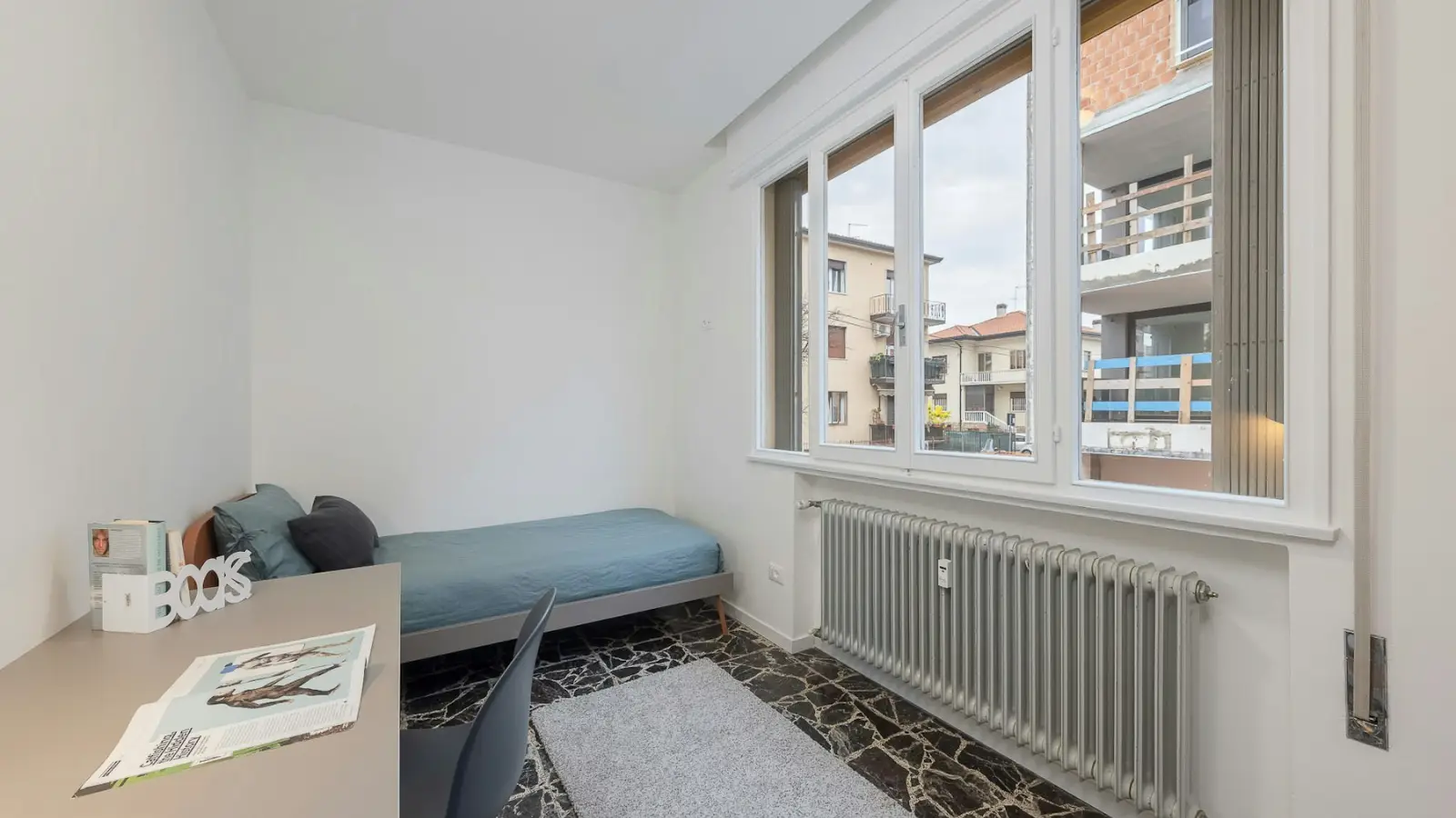 Questa accogliente camera singola è appositamente studiata per soddisfare le esigenze degli studenti, offrendo un ambiente confortevole e funzionale perfetto per lo studio e il relax. All'interno della stanza troverai un'ampia scrivania e una comoda sedia ACADEMY Calligaris, che creano lo spazio ideale per dedicarsi a lunghe sessioni di studio. Il letto minimalista, dotato di un materasso di alta qualità, assicura un comfort eccezionale. Sappiamo quanto sia fondamentale il riposo per i nostri ospiti, per questo abbiamo dedicato particolare attenzione alla scelta dei materassi per le nostre camere.