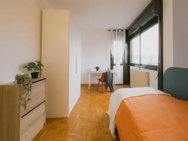 Benvenuti nella vostra nuova casa a Borgo Roma, Verona! Questa camera in un appartamento condiviso con 4 camere da letto è completamente arredata e vanta i comfort essenziali per una vita moderna. L'appartamento è dotato di un sistema di aria condizionata centralizzato per il massimo comfort, una cucina completamente attrezzata con lavastoviglie e forno, e tutte le utenze (elettricità, acqua, gas e Wi-Fi) sono incluse nell'affitto. Potrete inoltre godere di un grazioso balcone e di un parcheggio in loco, sebbene non siano ammessi animali domestici e non sia consentito fumare all'interno della proprietà. L'immobile è stato accuratamente verificato da proprietari certificati per la vostra massima sicurezza.