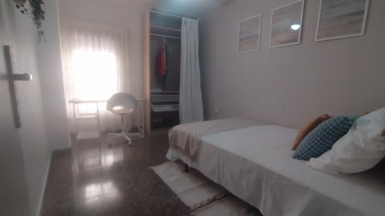 SÓLO CHICAS Preciosas habitaciones de uso individual en este piso recién reformado Toda la vivienda es exterior y se encuentra en la primera planta de un edificio bien conservado. La ubicación del piso es inmejorable: a solo 5 minutos de Consum y Mercadona, y con fácil acceso al CEU y al metro Seminari, para facilitar tus desplazamientos diarios a la Universidad. La cocina está completamente equipada con lavadora, nevera y horno a estrenar, perfectos para preparar tus comidas favoritas que podrás compartir con tus compañeras de piso en el práctico comedor. - Habitación 1: 16 m2, Cama 135cm+ dos armarios+ escritorio + silla + balcón - Habitación 4: 12m2, cama 105cm + armario + escritorio + silla Todas las habitaciones son exteriores y cuentan con cómodos escritorios y sillas para poder estudiar, así como con ventiladores de techo. Colchón, somier, escritorio, silla, armarios y equipamientos comunes nuevos (vajilla, cubertería, menaje, microondas) Las almohadas, ropa y la ropa de cama no están incluidos, y se muestran en las fotos para que puedas imaginarte mejor cómo será tu nueva habitación. ¡No pierdas la oportunidad de vivir en este acogedor hogar! Recuerda que aquí no se admiten mascotas ni parejas.