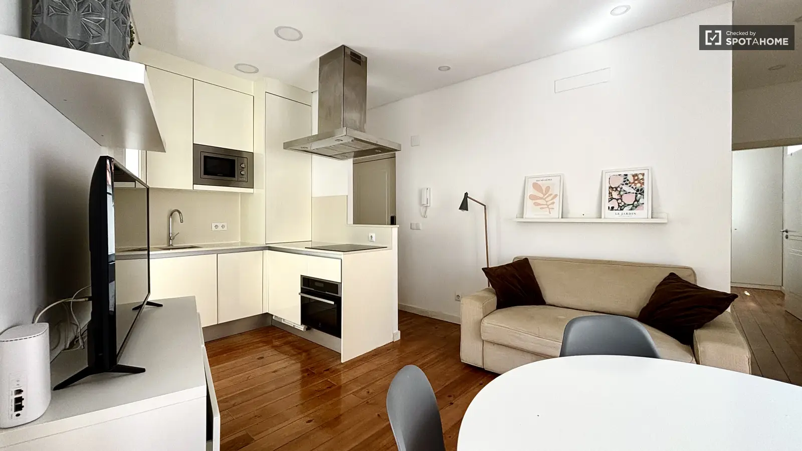 Looking for a cozy and fully furnished 1-bedroom apartment in Lisbon? This property offers modern amenities such as a washing machine, a TV, an equipped kitchen with a dishwasher and oven, and includes WiFi. Suitable for professionals, students, and couples, this apartment is perfect for any lifestyle. Additionally, Spotahome has personally checked this property, ensuring its quality and reliability.