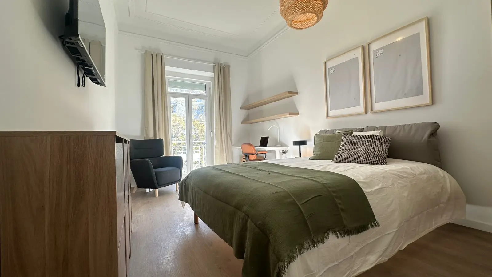 This is a room for rent in a shared 6-bedroom apartment located in Avenida Ressano Garcia, Lisbon. The property comes furnished, features an equipped kitchen, a common washing machine, a dishwasher, and an oven. All residents will need to follow house rules and guidelines.