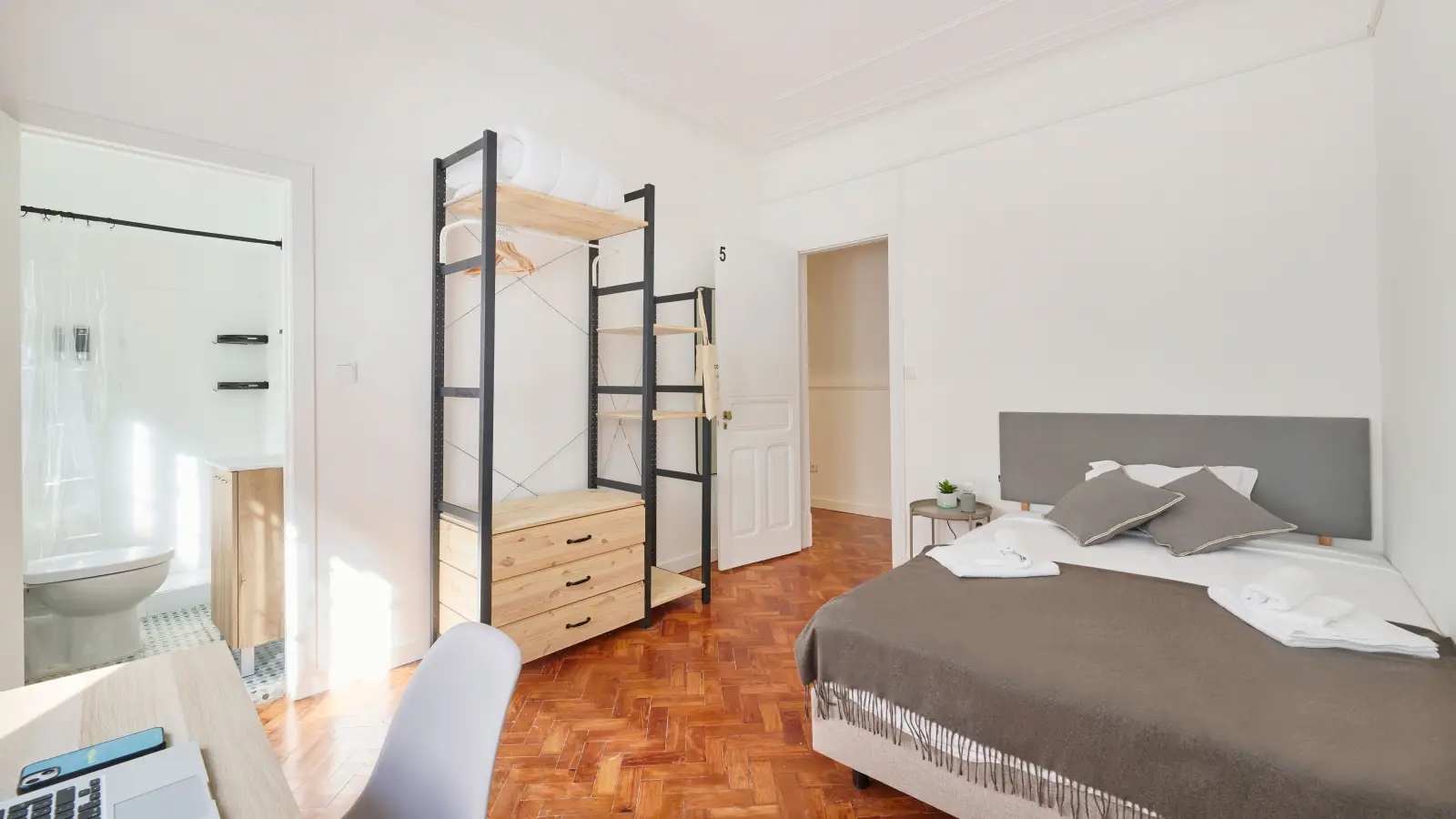 A recently renovated seven-bedroom apartment with two full bathrooms (shared by five rooms) and two Master Suites. The apartment is on a fifth floor with elevator, in the premium neighborhood of Príncipe Real. IMPORTANT NOTES: - RESPONSIBILITY: In shared apartments, certain rules naturally apply to all tenants, regardless of whether they have a private bathroom. These rules are intended to ensure the proper functioning, maintenance and hygiene of the common areas and they apply to everyone without exception, especially when it is not possible to assign responsibility for damages/misuse to a specific tenant. Such measures are standard in shared living environments, helping to ensure that all tenants can enjoy a clean, safe and well-maintained apartment. - BILLS: Not included. They are forty-five euros per person per month - DEPOSIT: Equal to the value of one month’s rent. - AMOUNTS NECESSARY FOR RESERVATION: First month’s rent. - AMOUNTS NECESSARY UNTIL THE STARTING DATE: Deposit + last month’s rent (with bills) + missing bills from the first rent - Couples are allowed in Room Two for an additional one hundred euros in rent
