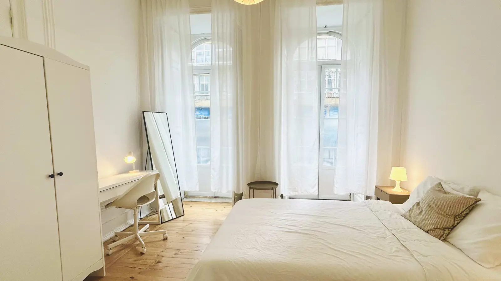 Welcome to this charming room in a shared 5-bedroom apartment located in Lisbon. The apartment is fully furnished and equipped with practical features, including a well-equipped kitchen with a dishwasher and oven, a common washing machine, and a balcony or terrace for relaxation. Smoking is permitted within the property, and overnight guests are allowed. Couples are not permitted.