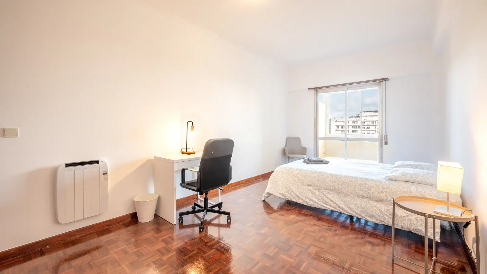 Discover a comfortable room available for rent in a shared 6-bedroom apartment located in Lisbon. This property has been duly vetted by Spotahome, ensuring landlords meet strict standards. The room is fully furnished, featuring a double bed, built-in wardrobe, desk, and window, offering a welcoming space for individual tenants. Independent keys are provided for added privacy.