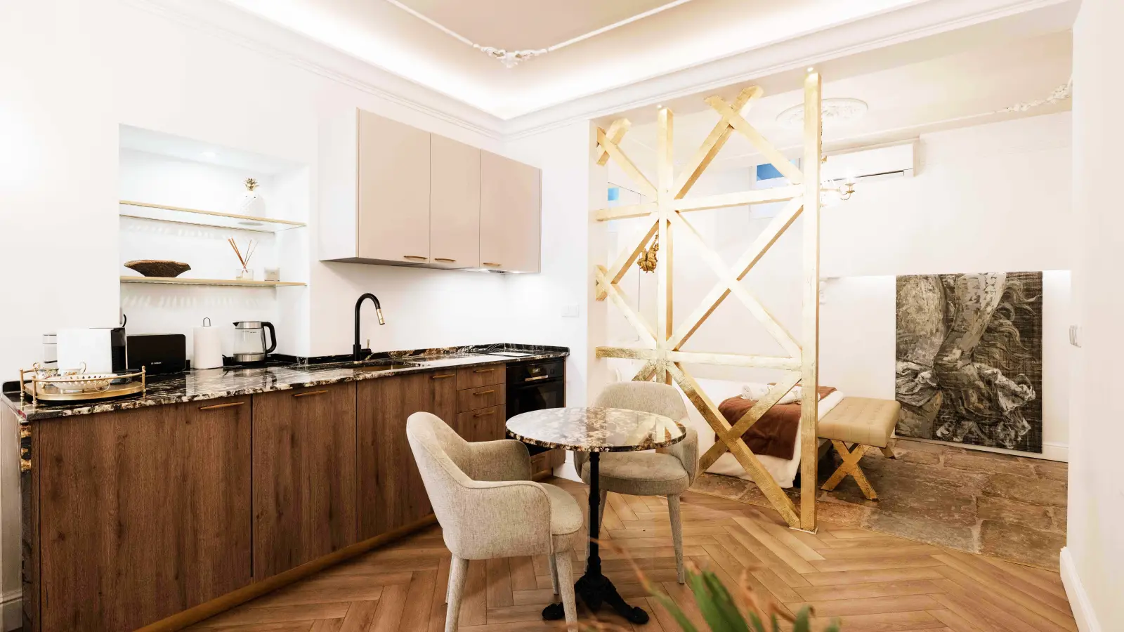 This studio in Lisbon offers a fully furnished and functional living space, tailored for your needs. The kitchen comes equipped with essential appliances including a dishwasher and an oven. Air conditioning is provided through individual units, and the heating is powered electrically. Amenities such as a common washing machine are available. Note that features like a balcony or terrace, parking, pool access, and pet allowances are not included. Additionally, smoking is not permitted on the premises. Bills covering water, electricity, gas, and WiFi are included in the rent.