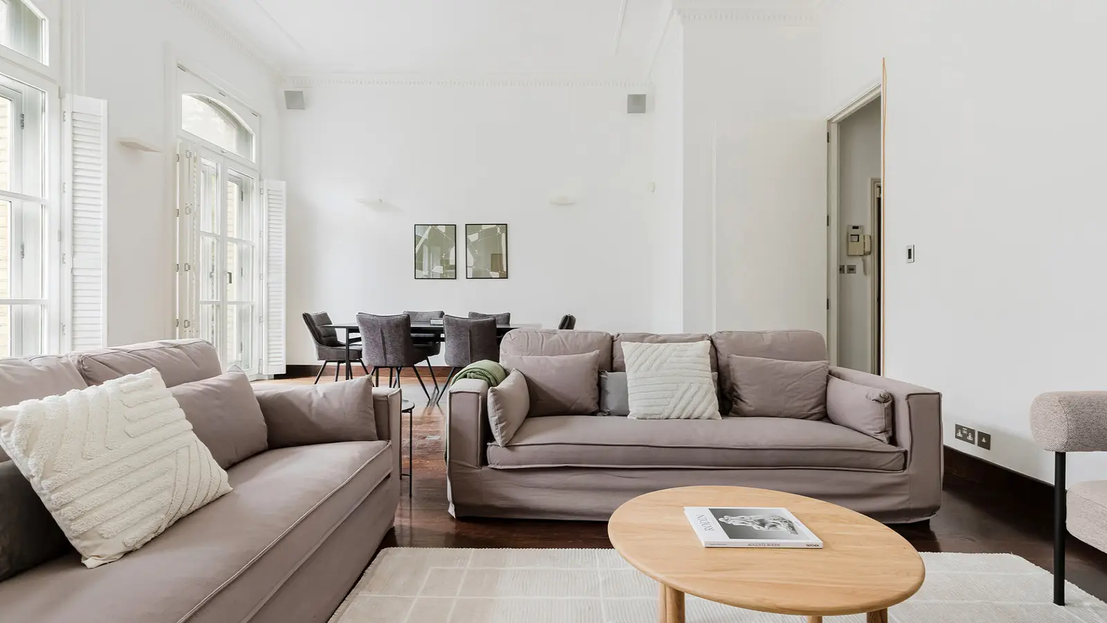 This modern, fully furnished 2-bedroom apartment is available for rent in Redcliffe, London. The property features an equipped kitchen with a dishwasher and oven, private washing machine and dryer, and individual air conditioning units in select areas. The building includes an elevator, adding convenience for residents. All bills, including electricity, water, gas, and WiFi, are included in the rental.