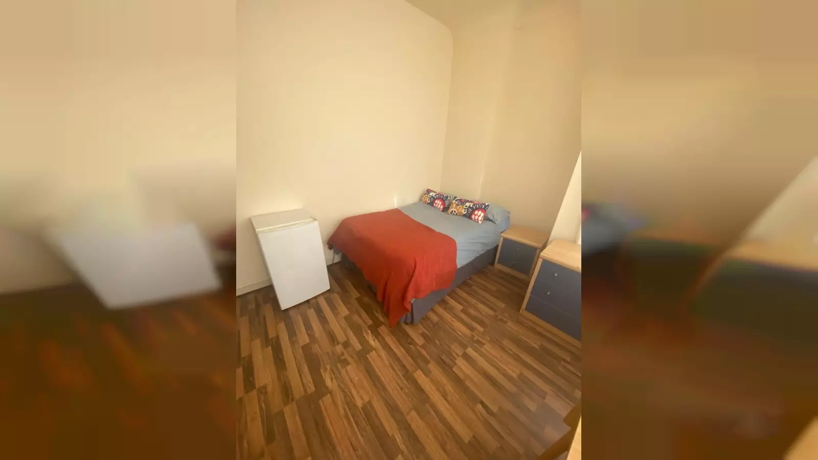 Room for rent in a co-living property. There are multiple showers and a communal laundry.