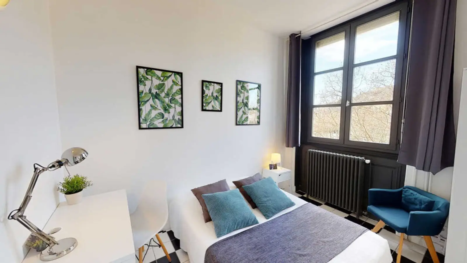 This lovely private bedroom in a fully equipped, furnished and all-inclusive flatshare in Lyon is a mix of comfort and design. It has got household furnishings, including a bed with pillows and duvet What is missing is your things to feel at home! The room can be locked if you need intimacy. The flatshare can be found in the Hôtel de Ville - Presqu'île neighborhood, in the heart of Lyon. Plenty of shops, public transports, restaurants are accessible close by. The apartment is on floor 5 with lift. It is entirely equipped and is composed of a large kitchen with refrigerator, microwave, pans, crockery, kitchen ustensils, kettle… The accommodation also contains an ironing board, a washing machine, a clothes rack, an iron. Additionally, you will find cleaning items in the accommodation: bagless hoover, dustpan and brush, broom, mop and bucket… Every Joivy furnished flatshare includes all expenses: housing insurance, water, electricity, unlimited wi-fi, condominium fees, household waste tax.