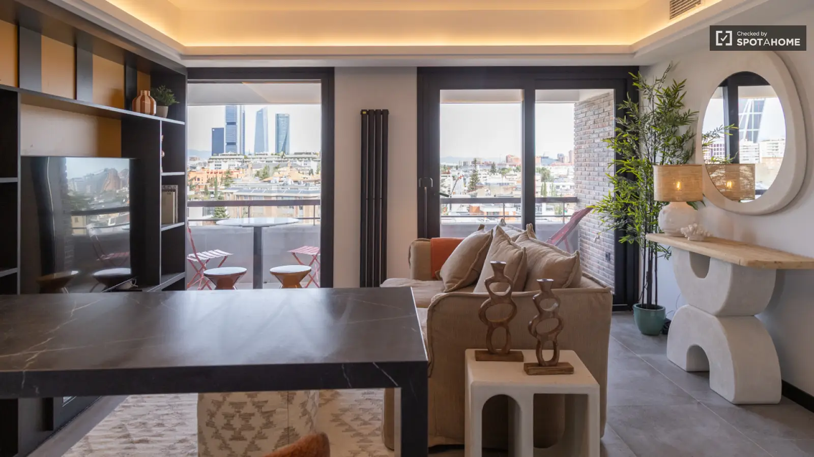 Nueva España is a vibrant area within Madrid, surrounded by various amenities and attractions. Notable points of interest include Plaza de Perú, an important tourist attraction, and numerous restaurants offering diverse cuisines such as Mediterranean, fast food, and American. The neighborhood provides a perfect balance of convenience and leisure activities.