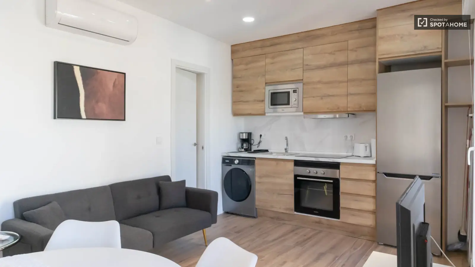 This stunning 4-bedroom apartment located in vibrant Puerta del Ángel, Madrid, offers a high level of comfort and convenience. The property is fully furnished and comes with modern amenities, including a central heating system and air conditioning, an equipped kitchen with a dishwasher and an oven, a washing machine for private use, a TV for entertainment, and a balcony to enjoy the exterior views. The building is equipped with an elevator, ensuring ease of access. All Spotahome landlords undergo a thorough vetting process, so you can rent with confidence.