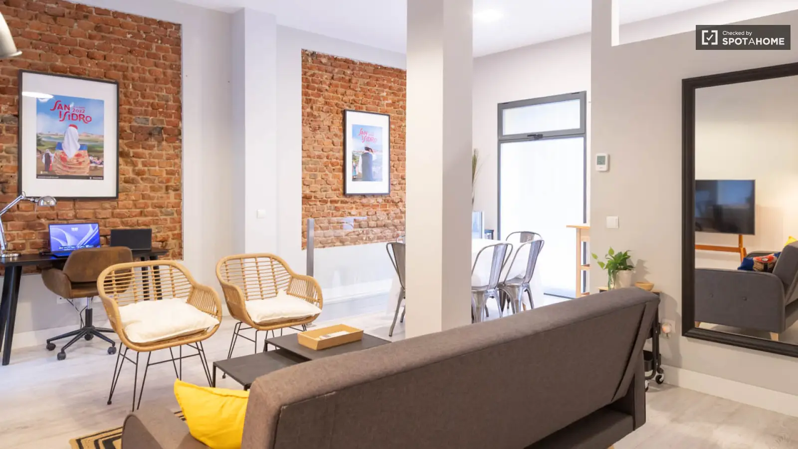 This well-furnished and interior 3-bedroom apartment is now available for rent in the lively neighborhood of Guindalera, Madrid. Ideally suited for professionals, couples, or students, this property offers a cozy living experience with a balcony, an equipped kitchen, a washer and dishwasher, and Spotahome has personally checked the property for added trust and assurance.