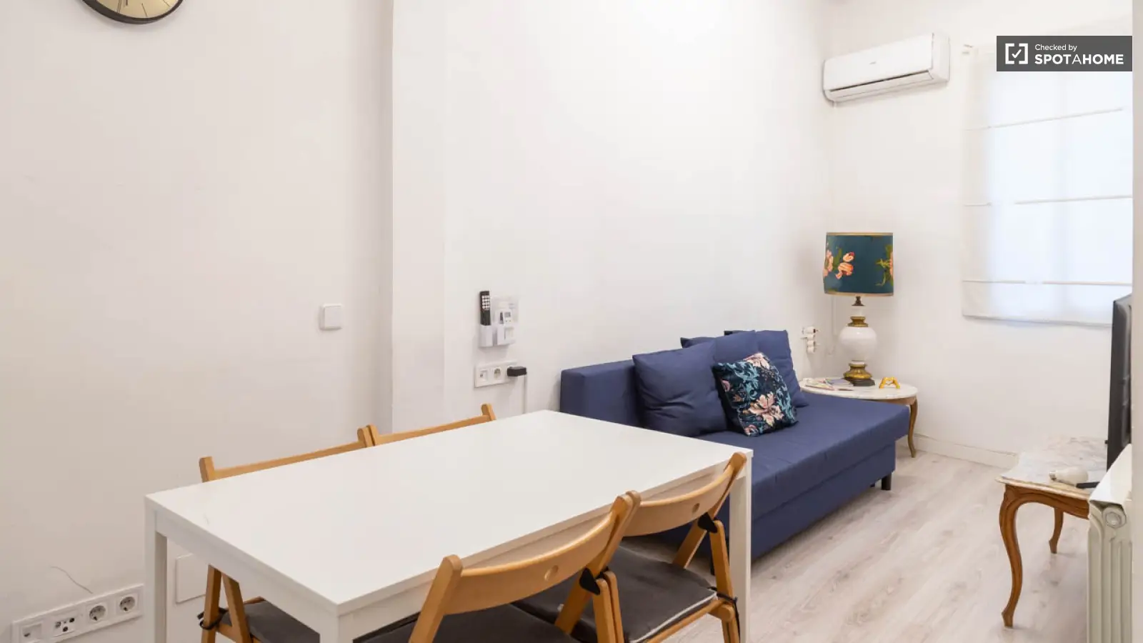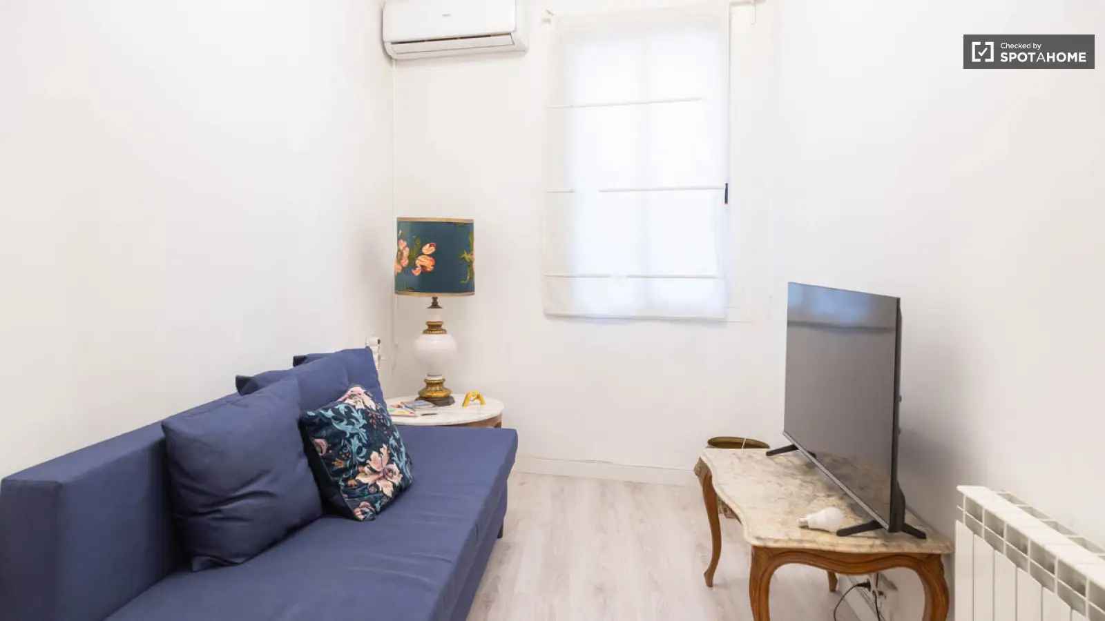 This 3-bedroom interior apartment, located in the lively neighborhood of Embajadores, Madrid, offers a comfortable and practical living space. The apartment comes fully furnished, with an equipped kitchen featuring essential appliances such as a dishwasher, private washing machine, and individual air conditioning units. Spotahome has personally checked this property, ensuring its quality and reliability. Please note that some utilities need to be paid to the landlord.