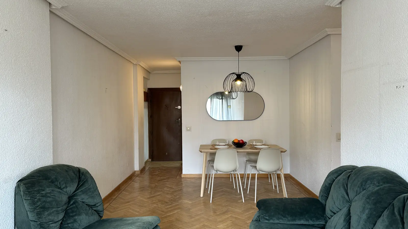 Explore this furnished 3-bedroom apartment in Aluche, complete with a central heating system, private washing machine, kitchen, and elevator access. Note: there is no internet available. Suitable for both professionals and students.