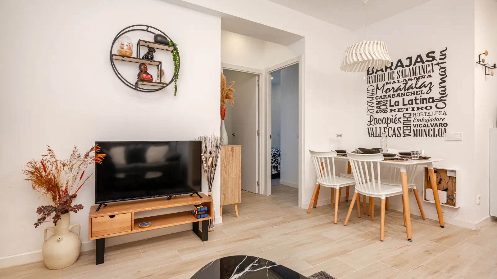 This modern 2-bedroom apartment located in Puerta Bonita, Madrid offers a comfortable living experience. The apartment comes furnished, features individual air conditioning units for heating, and is equipped with essential appliances such as an oven and a common washing machine. The kitchen is well-equipped for all culinary needs, providing excellent functionality. Please note that smoking and pets are not allowed.