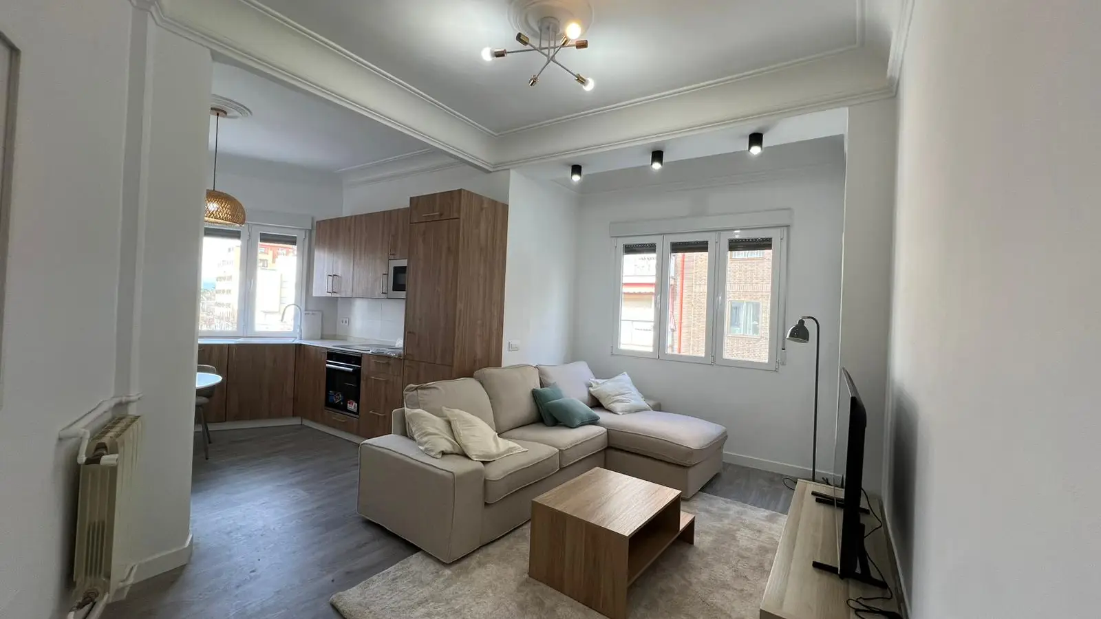 This furnished 3-bedroom apartment in Berruguete features a modern equipped kitchen with a dishwasher and oven. The central air conditioner and heating system ensure comfort. Pets and smoking are allowed, with included amenities such as a washing machine in a common area. Bills for electricity, water, gas, and wifi are included, making this apartment an attractive choice.