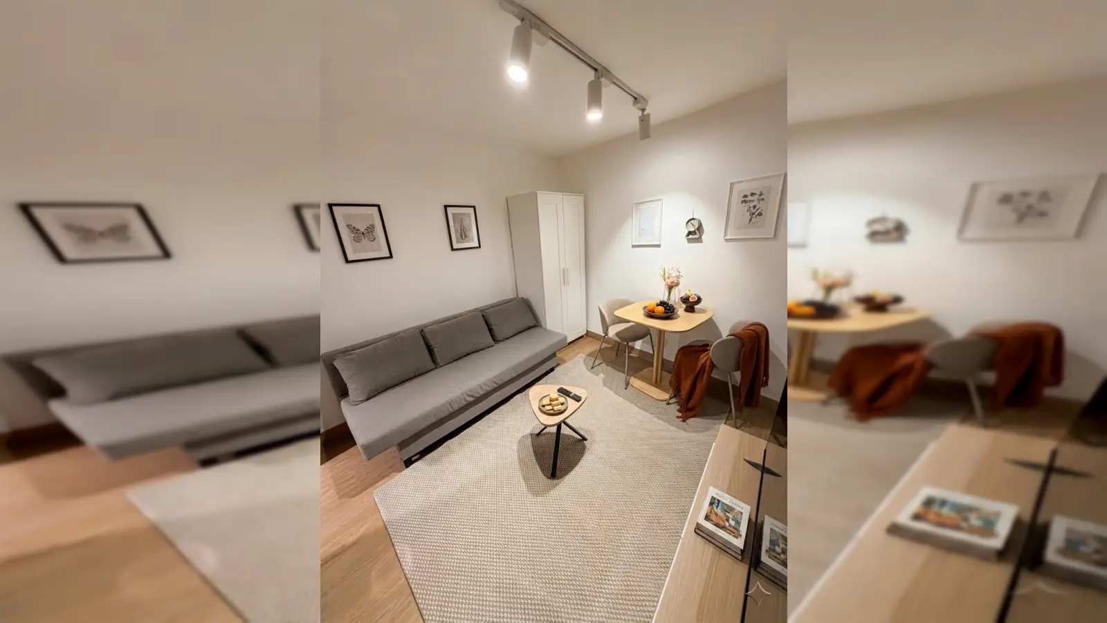 The month you move in and the month you move out, you will only pay for the days that you have booked.