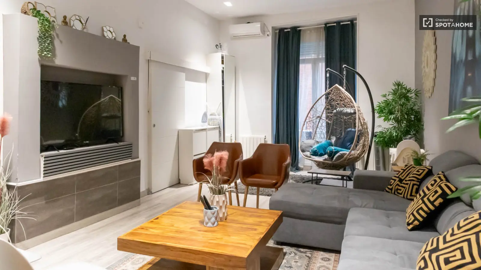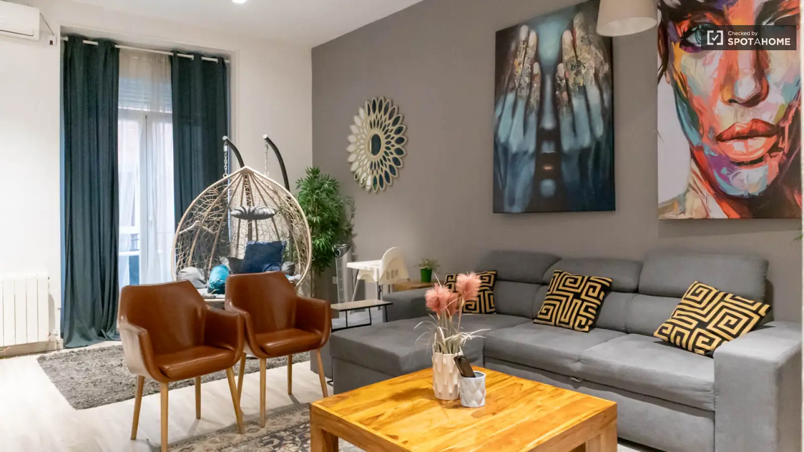 Looking for the perfect place to live in Madrid? This 5-bedroom apartment located in the vibrant Embajadores neighborhood might be just for you. Fully furnished and ready for living, this property offers individual air conditioning units, a balcony for relaxing, an equipped kitchen with a dishwasher and oven, and laundry amenities like a common washing machine and a private dryer. Smoking is allowed in the property, and overnight guests are welcomed. Couples and students are also permitted, creating a flexible and welcoming environment.