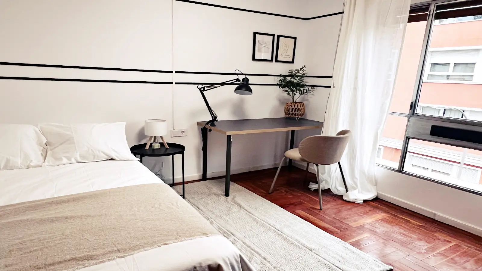 Welcome to this appealing room in a shared 6-bedroom apartment located in the vibrant Casa de Campo neighborhood of Madrid. The apartment is fully furnished and boasts a convenient elevator as well as a balcony/terrace for tenant enjoyment. Notable amenities include an equipped kitchen furnished with modern amenities and central heating for added comfort. This property includes bills for electricity, water, gas, and Wi-Fi in the rent.