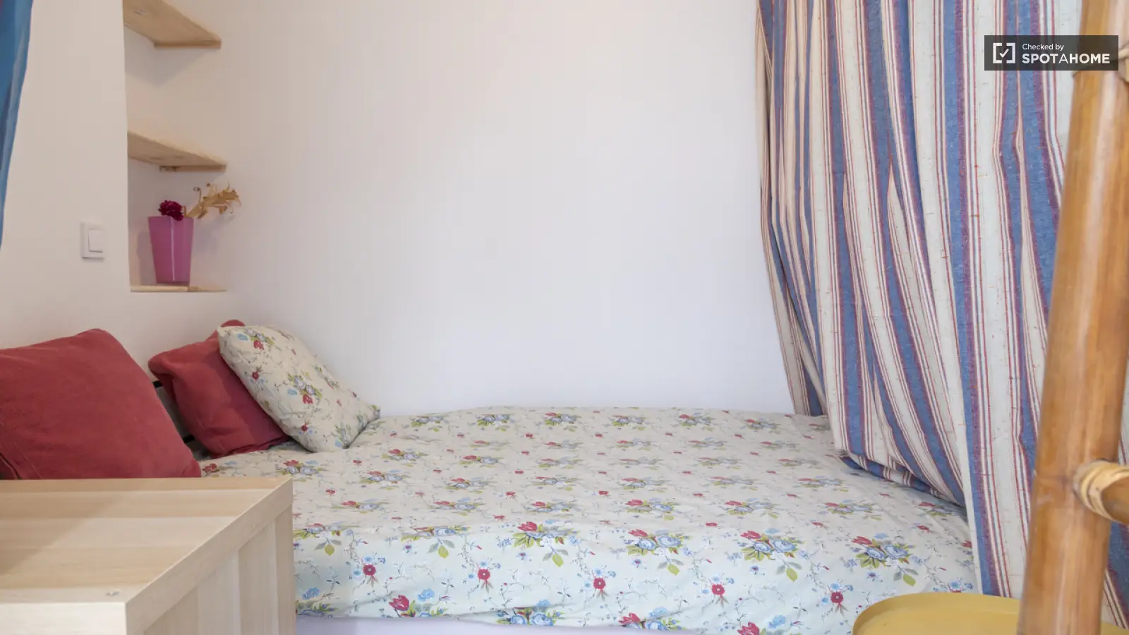 Looking for a cozy room in Moscardó for a female tenant? This spacious 4-bedroom shared apartment comes fully furnished, with equipped kitchen featuring an oven and a private washing machine. Spotahome has personally checked this property for verified standards. Ideal for professionals and students, this room offers a balanced environment for study and rest.