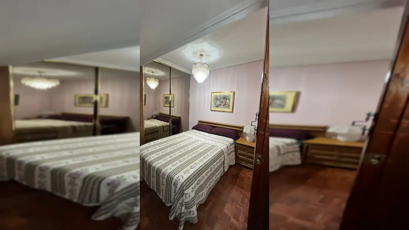 This is a furnished room in a shared 3-bedroom apartment situated in Moscardó, Madrid. Enjoy modern living with features such as an equipped kitchen, elevator, washing machine access, and all bills included. While WiFi is available, please note no air conditioner or additional parking facilities.