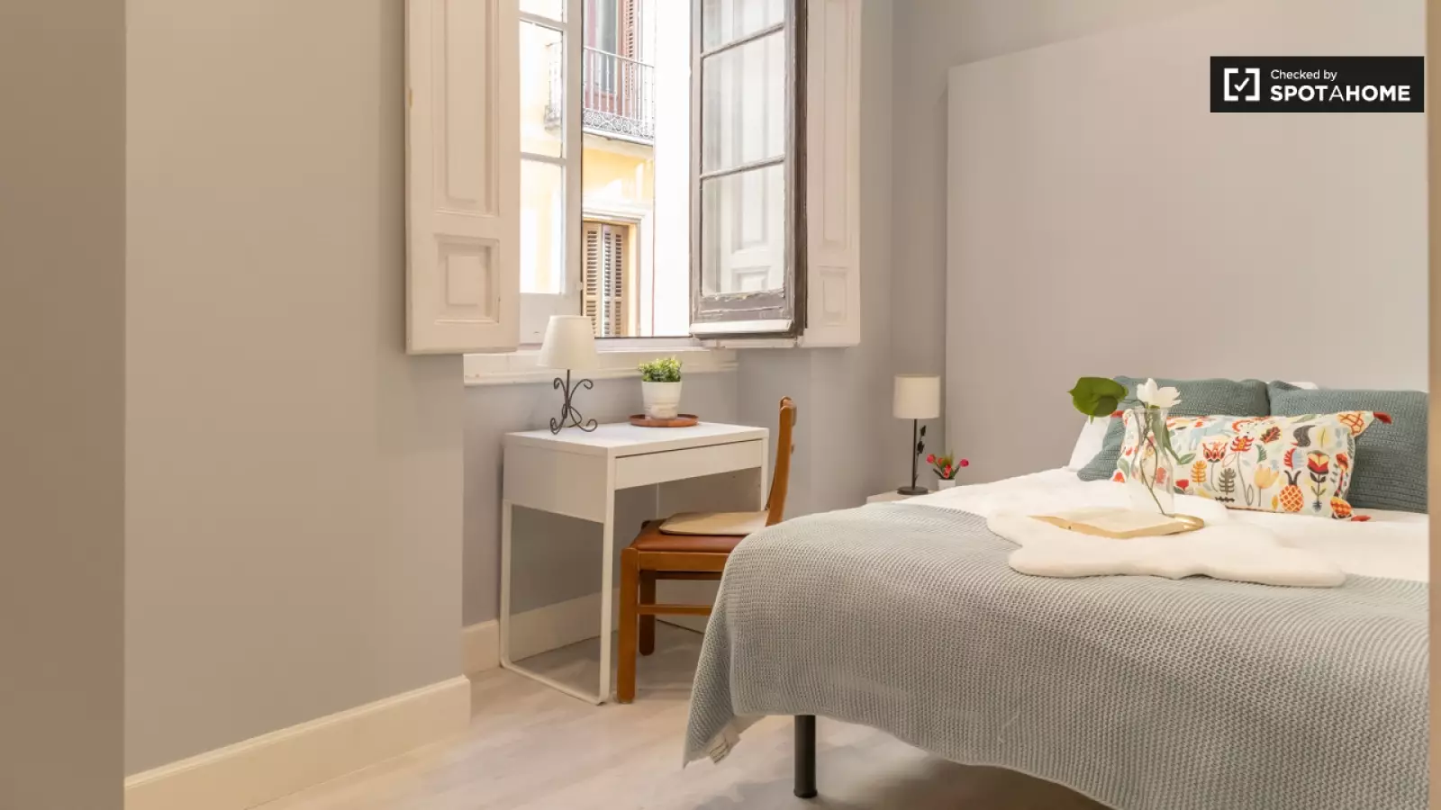 Rooms for rent in a furnished 4-bedroom apartment on Calle De La Sal. The property is on the 2nd floor of a building with elevator. The property includes a balcony.