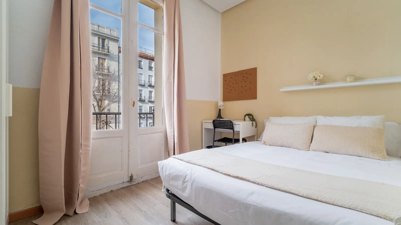 Located in the beautiful neighborhood of Trafalgar on Glorieta de Quevedo, this 8 bedroom, 2 bathroom apartment has 8 rooms for rent. Tenants will share the the living room, kitchen, and 2 bathrooms, all renovated and stylish! Trafalgar is one of the nicest and quaint areas in which to live- you have everything from shopping to quiet, green filled plazas within walking distance. The rooms are ideal for those who want to live in a charming neighborhood and meet new people while doing so- with 8 tenants total, we trust you’ll be making new friends during your stay in Madrid!