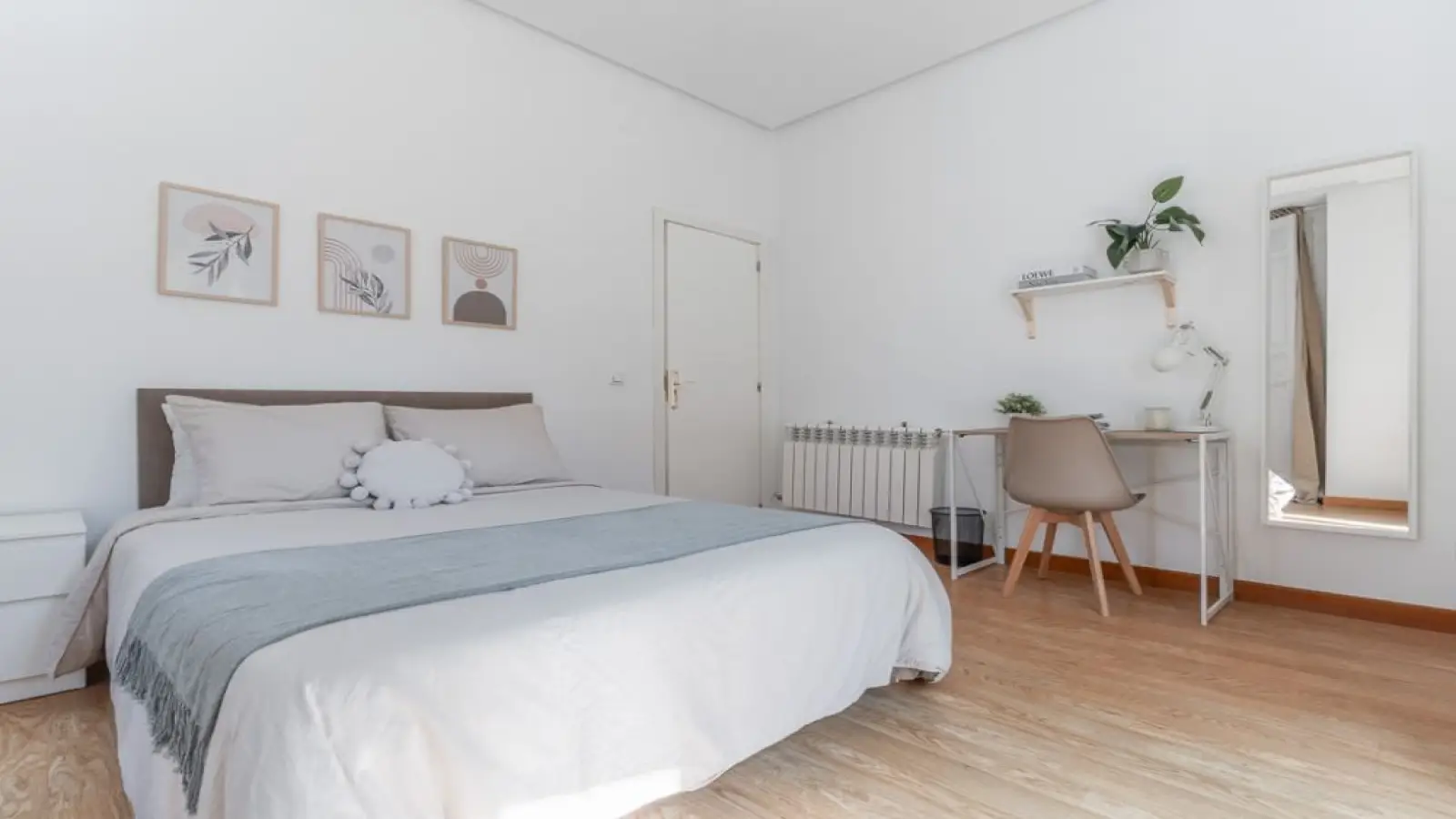 Located on Calle Redondilla, this 7-bedroom, 2-bathroom apartment is perfect for anyone looking to live in the center of Madrid. All 7 bedrooms are available for rent and come fully furnished with every amenity one would need in order to have a comfortable stay while in Madrid. The kitchen comes fully equipped, featuring 2 refrigerators, an oven, dishwasher and ample counter space for preparing delicious meals. The shared living room is a great space for getting to know other flatmates and features a cozy sofa, three plush chairs and a table that can be used for studies or enjoying meals. As an added bonus this shared apartment has a balcony, that allows for views of the surrounding area of La Latina.