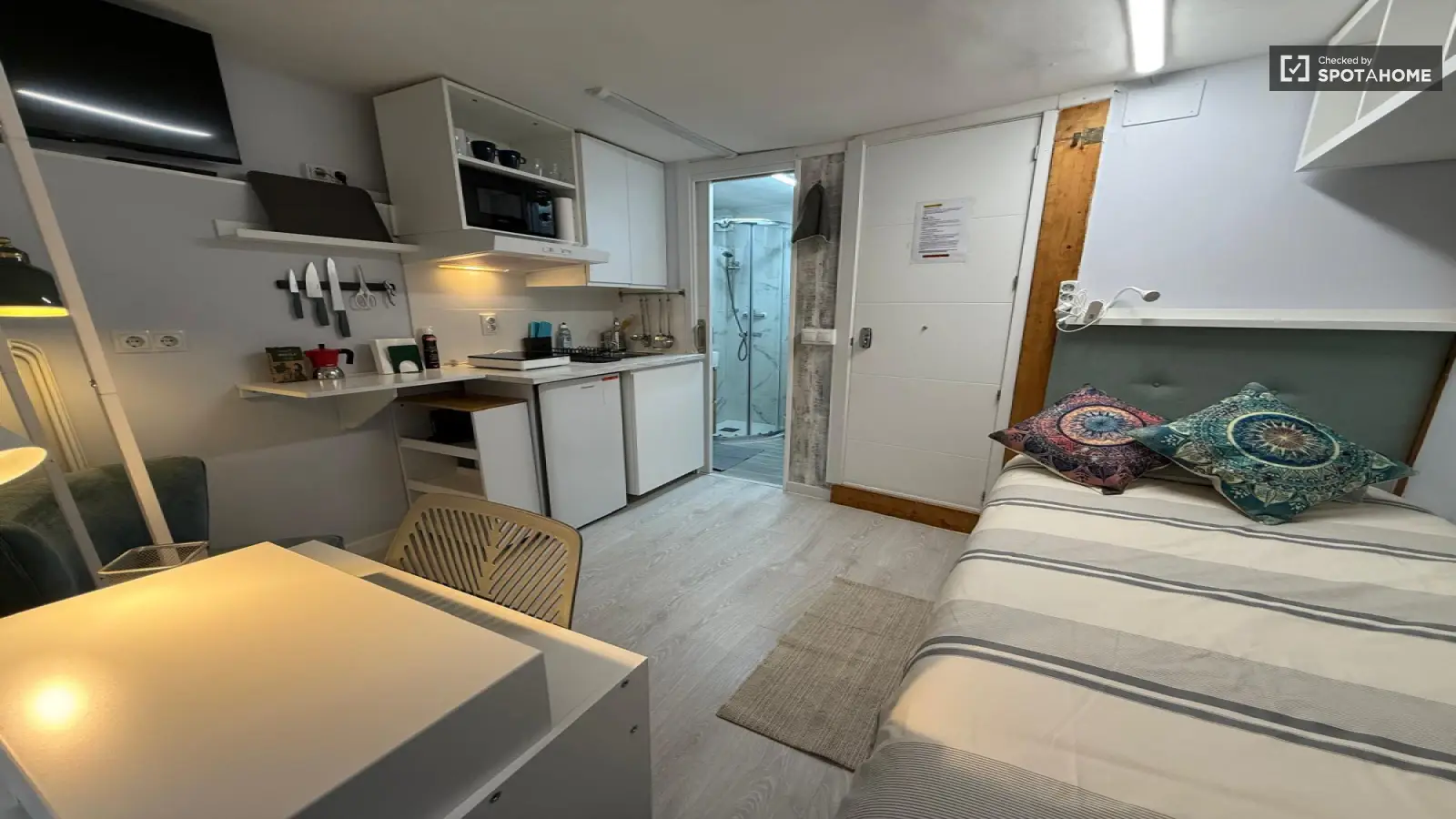 Experience the charm of Madrid from this fully furnished studio located in the vibrant Embajadores neighborhood. With all essential utilities included, this property ensures a hassle-free living experience. The studio features a modern equipped kitchen, perfect for preparing your favorite meals. Spotahome ensures all landlords go through a complete vetting process, providing you with peace of mind.