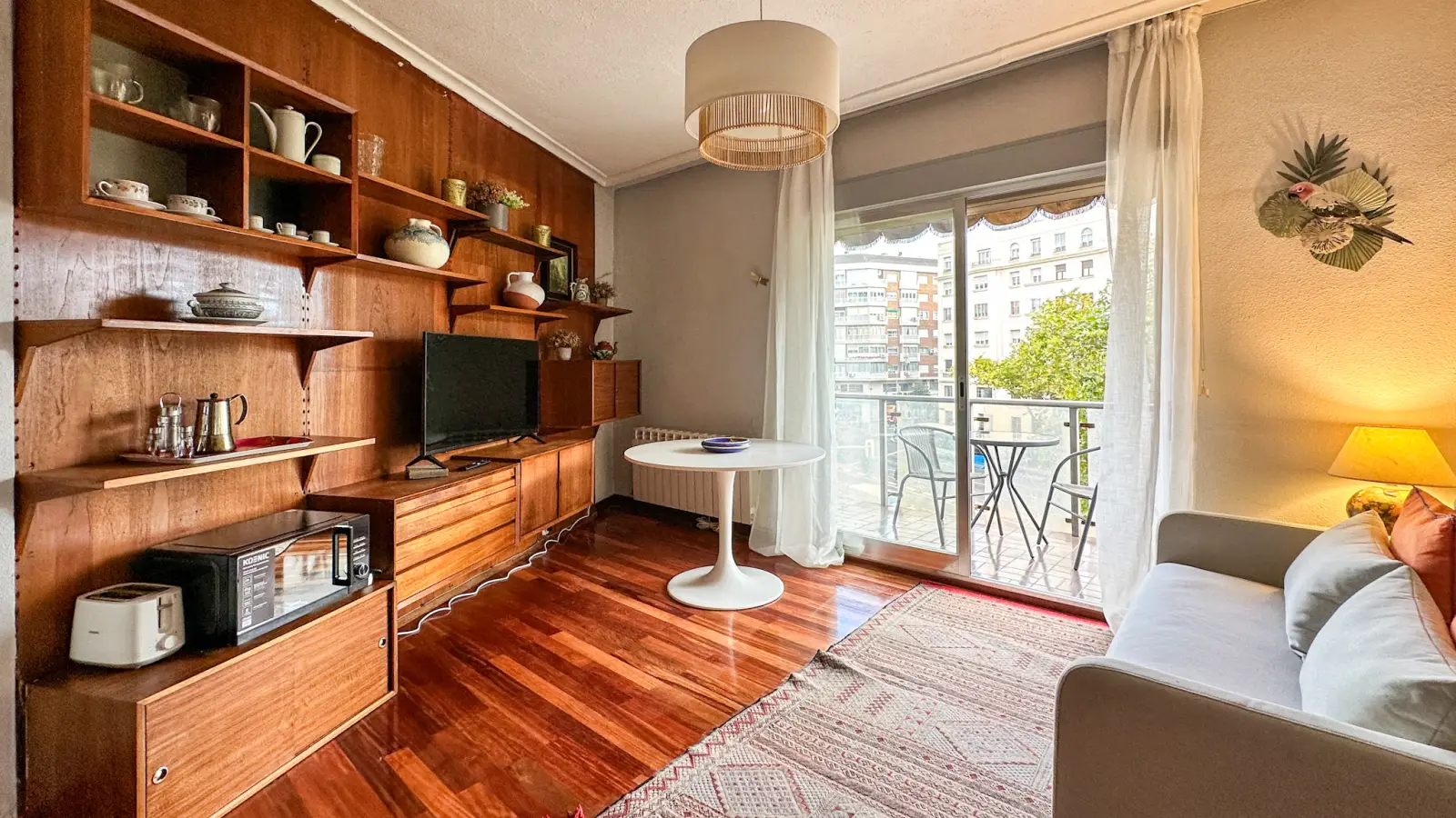 Discover a well-furnished studio apartment for rent in the central neighborhood of Lista, Madrid. It includes an equipped kitchen, a balcony or terrace, and parking facilities. Please note that this property does not accommodate pets, prohibits smoking, and does not include bills.
